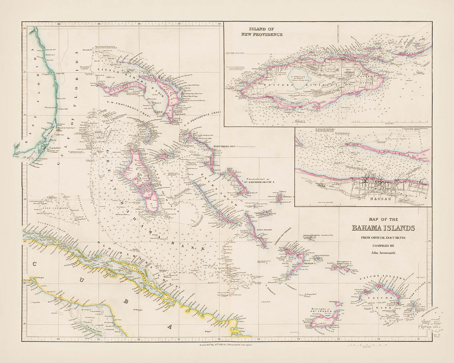 - Mapas insertados de la isla de Nueva Providencia y Nassau