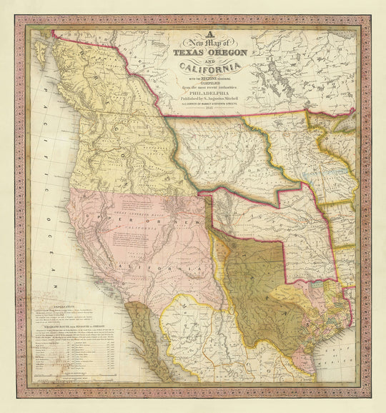 Esta maravillosa antigua mapa de los Estados Unidos de América Occidental, California, Oregón y Texas fue publicado originalmente en 1846. Fue creado por Samuel Mitchell.