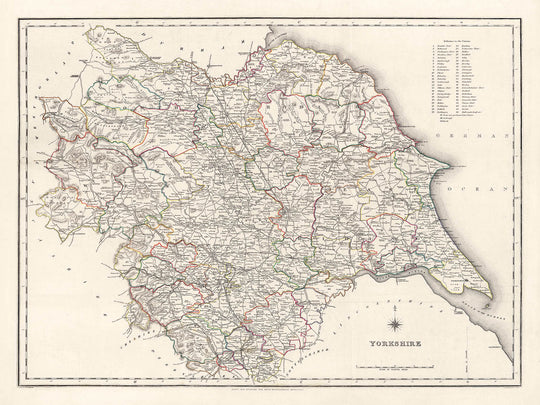 Retrocede en el tiempo con este impresionante y meticulosamente detallado mapa de Yorkshire de 1844, elaborado por el reverenciado cartógrafo Samuel Lewis. Esta obra de arte representa meticulosamente los límites históricos del condado de Yorkshire en una época en la que muchas de sus ciudades y pueblos estaban en las primeras etapas de su ascenso industrial. Es una ventana a una era pasada, donde algunas ciudades modernas pueden no haber existido aún, o haber existido bajo un nombre diferente, proporcionando una narrativa intrigante sobre el desarrollo de esta región históricamente rica.
