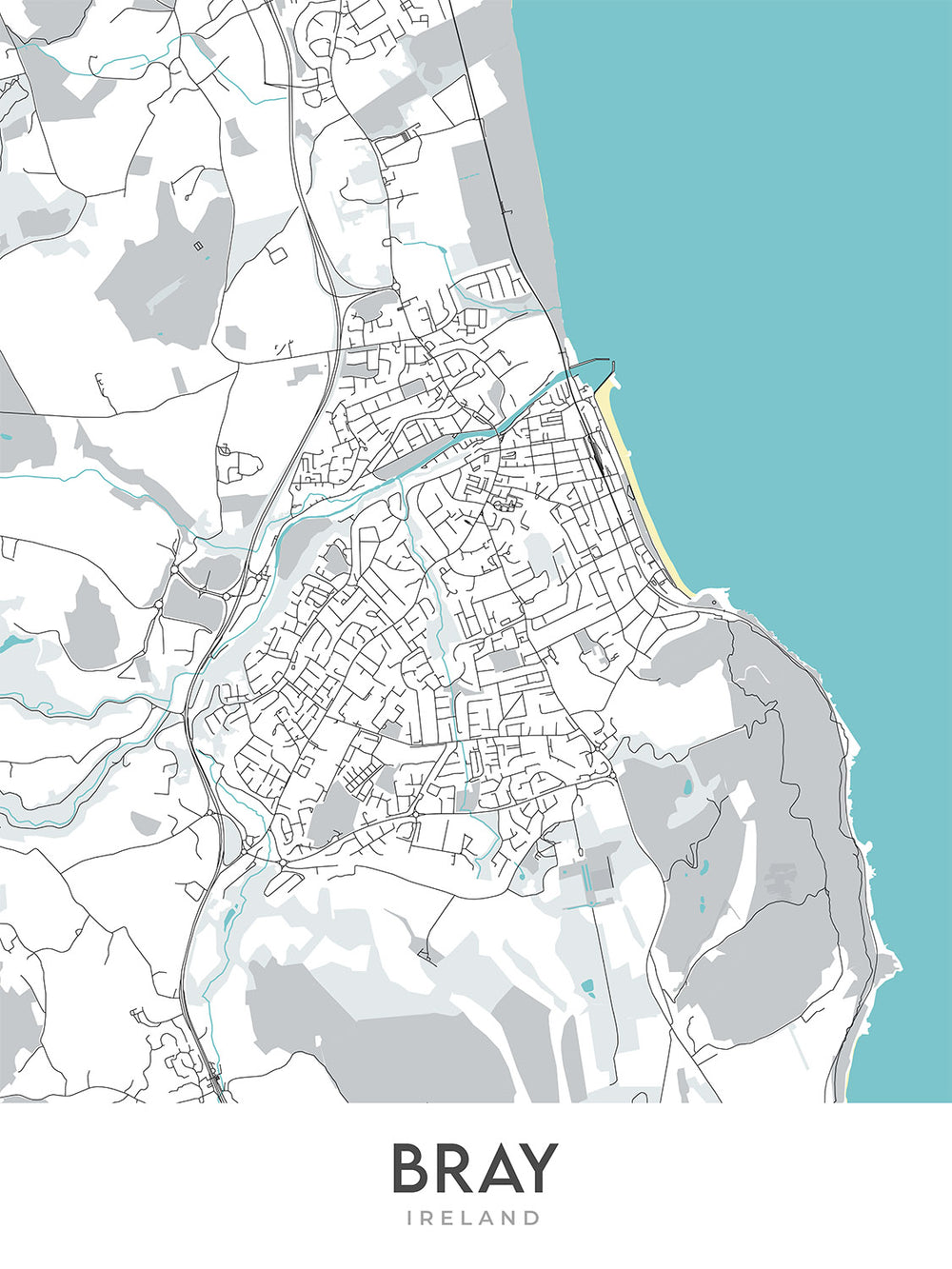 Mapa moderno de la ciudad de Bray, Irlanda: Bray Head, Bray Harbour, Reserva Natural de Bray Head, N11, R117