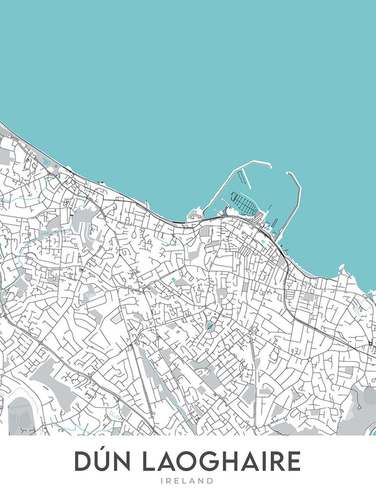 Mapa moderno de la ciudad de Dún Laoghaire, Irlanda: Puerto de Dún Laoghaire, Sandycove, Isla Dalkey, Killiney Hill, N11