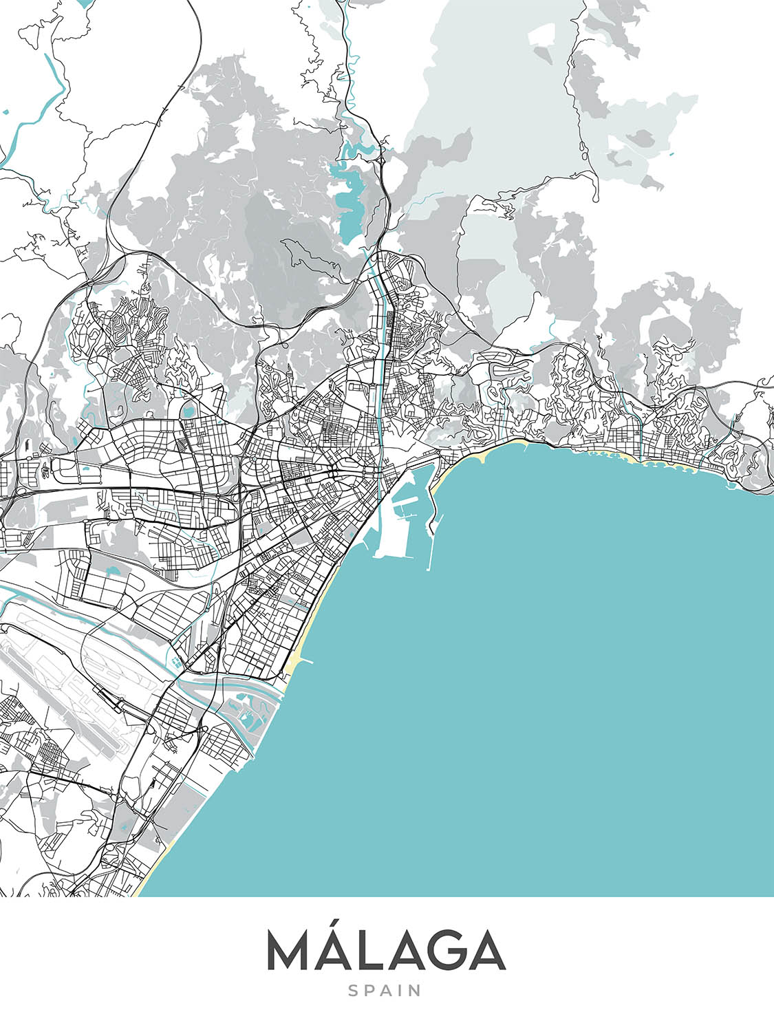 Este mapa de Málaga, creado por The Unique Maps Co., es una representación moderna y detallada de la ciudad. Captura la esencia de Málaga, mostrando sus vibrantes vecindarios, monumentos icónicos y una intrincada red de calles. El mapa es una obra maestra visual, diseñada para ser tanto informativa como estéticamente agradable, lo que lo convierte en una adición perfecta para cualquier hogar u oficina.