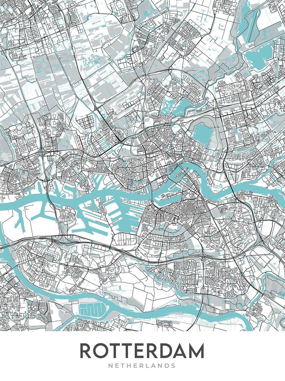Este mapa es una creación original de The Unique Maps Co., que presenta una cartografía única, un diseño moderno y una paleta de colores única. El mapa está impreso en papel de alta calidad y está disponible en varios tamaños para adaptarse a sus necesidades. Es un regalo perfecto para cualquiera que ame Róterdam o para cualquiera que aprecie los mapas hermosos.