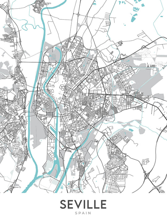 Este mapa de Sevilla, España, es una obra de arte cartográfica moderna que será un complemento elegante para cualquier hogar u oficina. El mapa se centra en la ciudad de Sevilla y sus alrededores, proporcionando una visión detallada de los barrios, las principales carreteras y los puntos de referencia de la ciudad. El mapa es un excelente iniciador de conversación y una manera perfecta de agregar un toque de sofisticación a cualquier habitación.