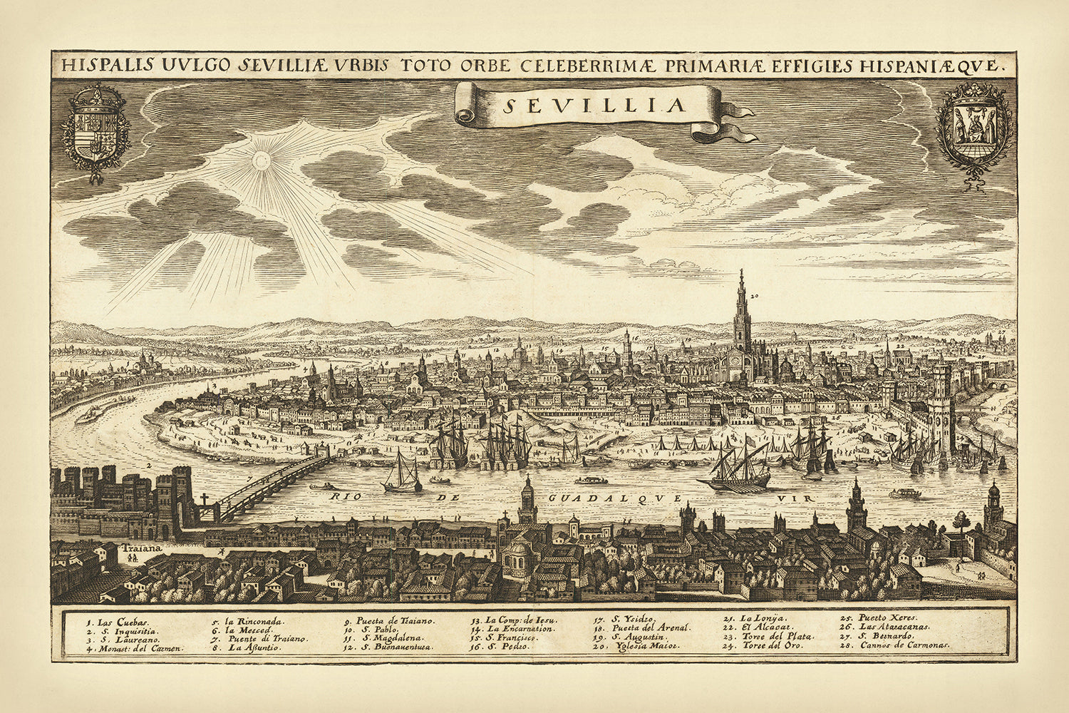 - Nombre del mapa: Hispalis vulgo Sevilliae urbis toto orbe seleberrimae primareae efigies Hispaniae que