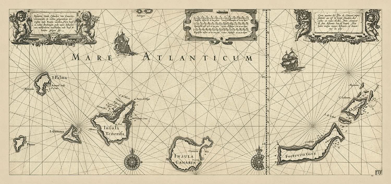 El mapa es una obra maestra de la cartografía náutica, que muestra una gran cantidad de información crucial para los navegantes de la época. La intrincada red de líneas loxodrómicas, rosas de los vientos y sondas proporciona una guía completa de las aguas costeras de las Islas Canarias. Estos elementos, combinados con las inscripciones bilingües en holandés y francés, reflejan el doble propósito del mapa como ayuda práctica para la navegación y como obra de arte.