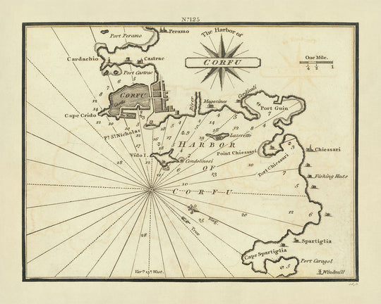 Carta Náutica del Viejo Puerto de Corfú por Heather, 1802: Fortalezas Venecianas, Rutas Marítimas Estratégicas