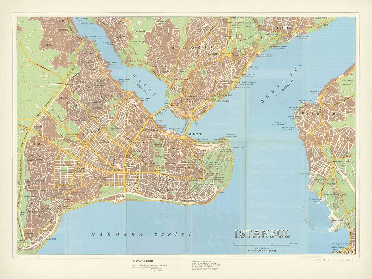 Mapa antiguo de Estambul, 1964: Ayasofya, Sultanahmet, Galata, Beyoğlu, Kadıköy