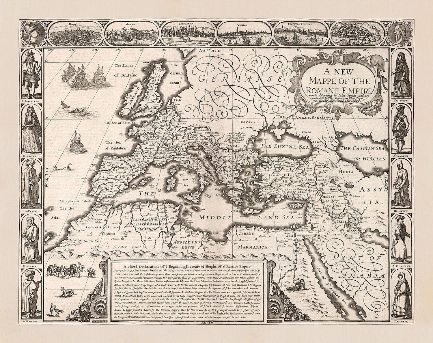 Mapa del Antiguo Imperio Romano, 1676 por John Speed: Mediterráneo, Bizantino, Oriente Medio, Norte de África