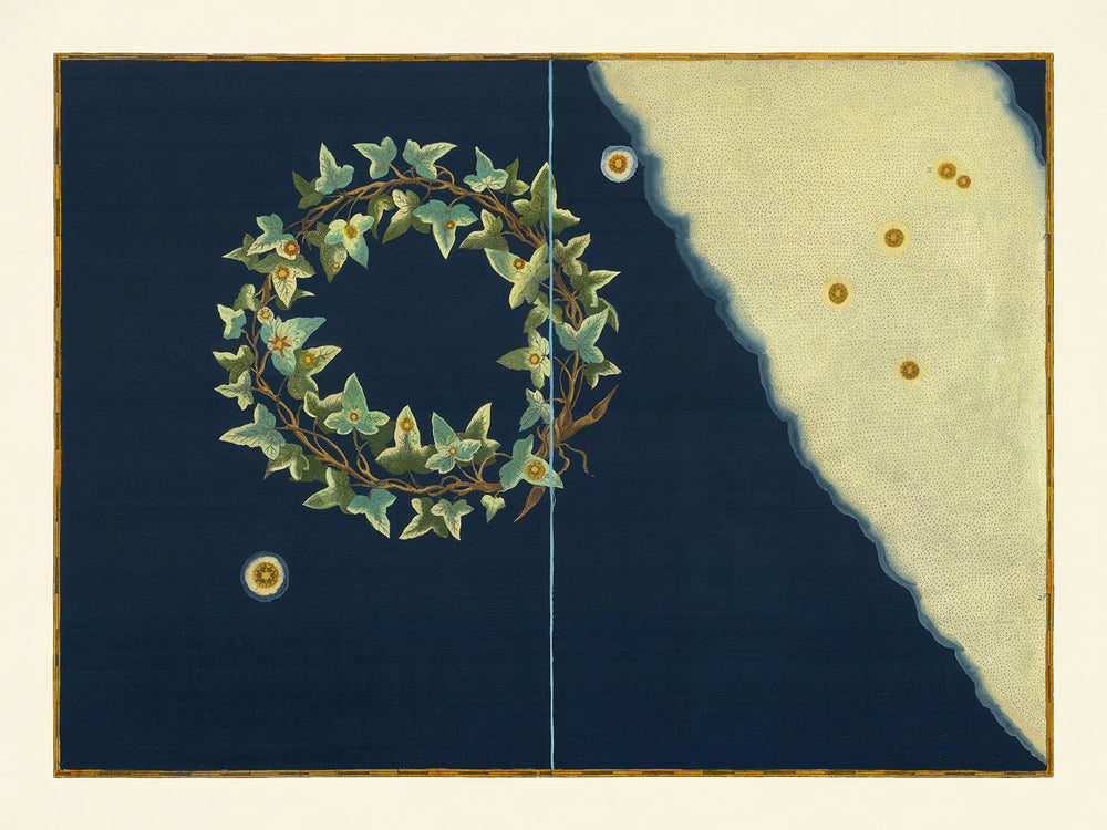 "Mapa Estelar Antiguo de Corona Meridionalis" es especialmente notable por su inclusión en el Uranometria de Bayer, que influyó significativamente en obras astronómicas posteriores de Schiller y Kepler. Este mapa combina de manera única estrellas de observaciones antiguas de Ptolomeo con datos más recientes de viajes de descubrimiento, incluidos los de Frederick de Houtman en las Indias Orientales. Las figuras de las constelaciones se basan en las creaciones del artista Jacobo de Gheyn, añadiendo una capa extra de mérito artístico al trabajo científicamente innovador de Bayer.