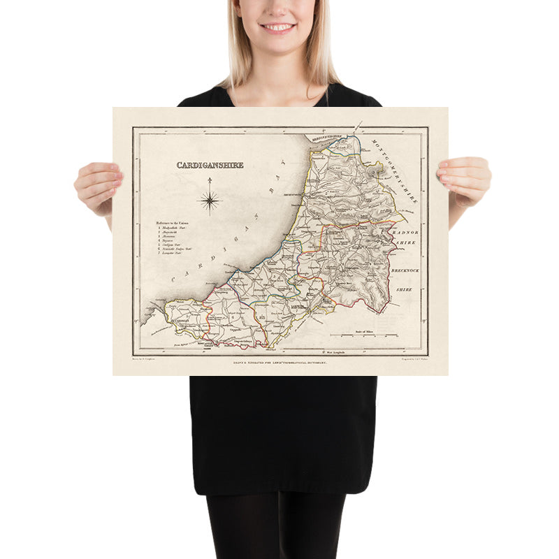Old Map of Ceredigion, Wales by Lewis, 1844: Cardigan Bay, Aberystwyth, Cardigan, Lampeter