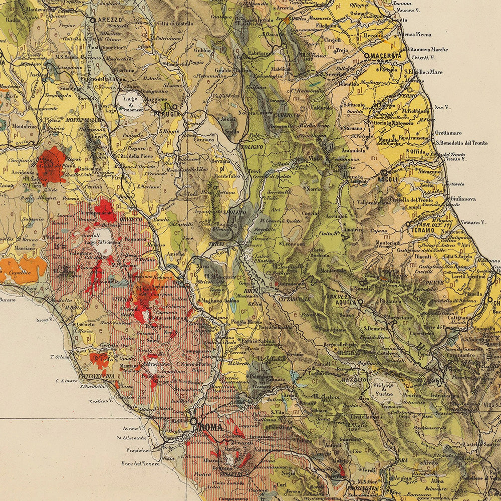As mapmakers, Virano e Teano combined disciplined field science with the visual rhetoric of the golden age of Italian cartography. Their thoughtful insets open windows onto complicated districts, the ornate cartouche frames scholarship with flourish, and the meticulous legend teaches as it guides. Created amid a surge of scientific exploration and urban growth, this work distilled a burgeoning national corpus of observations into a single, intelligible image. It is an atlas page and an assay report at once—an object that captures the confidence of its era, and a document that continues to illuminate Italy’s resources, hazards, and the geological logic beneath its cities, coasts, and mountains.