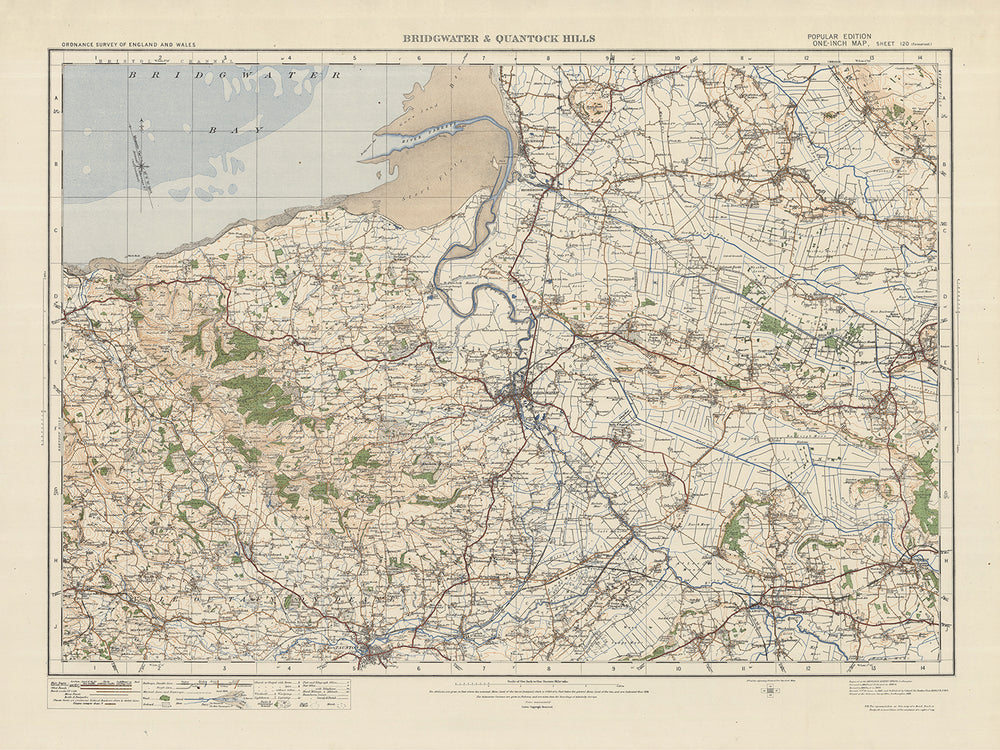 Sumérgete en el pasado con este antiguo y cautivador mapa de Ordnance Survey, Hoja 120 - Bridgwater & Quantock Hills, 1925. Descubra los pueblos, ciudades y características que dieron forma a la región y obtenga una comprensión más profunda de su importancia histórica.