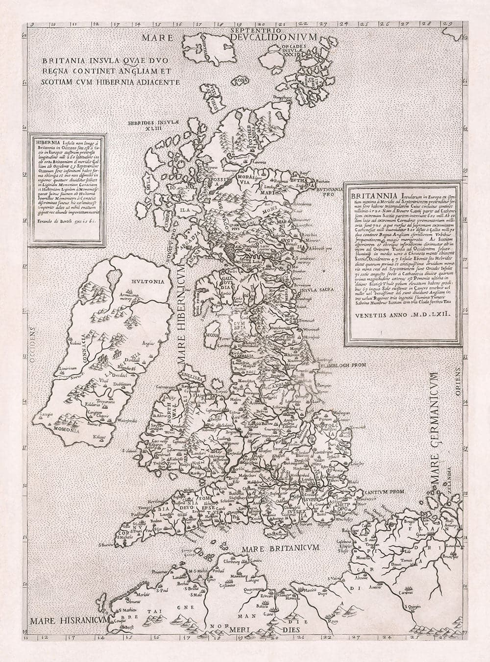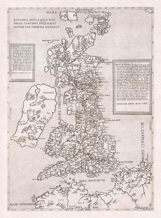 Los dos paneles descriptivos de INSET dan una descripción textual de Irlanda y Gran Bretaña ... pero escritos en latín, por lo que es posible que necesite un diccionario para descifrarlos.