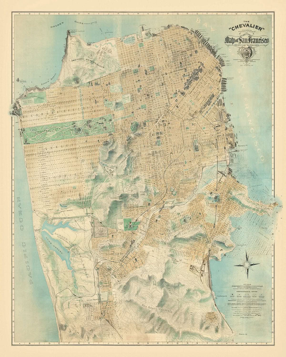 - Nombre del mapa: El "Chevalier" Mapa Comercial, Pictórico y Turístico de San Francisco.