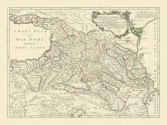 • Scope: A finely detailed representation of Georgia, Armenia, and territories between the Black and Caspian Seas, also including parts of modern Turkey and Azerbaijan.