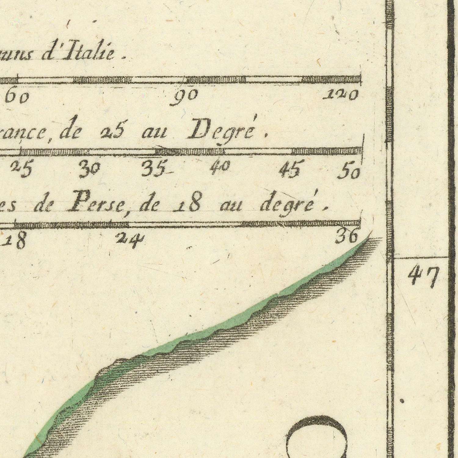 Santini, a Venetian savant and one of the most accomplished engravers of his generation, drew deeply on the legacy of Guillaume De L’Isle, whose rigorous geography set the standard for accuracy earlier in the century. Rather than merely copying, Santini updates and re-weights De L’Isle’s template with fresh intelligence from travelers, consuls, and commercial correspondents, then translates that knowledge into an elegant, readable surface. The result harmonizes Italian printcraft with French precision: place-names are legible yet abundant, relief is expressive but never cluttered, and borders are clarified without sacrificing nuance. In the 1770s, as his atlas projects matured, Santini stood at the nexus of scholarship and commerce—exactly the vantage required to chart a region so consequential and contested.