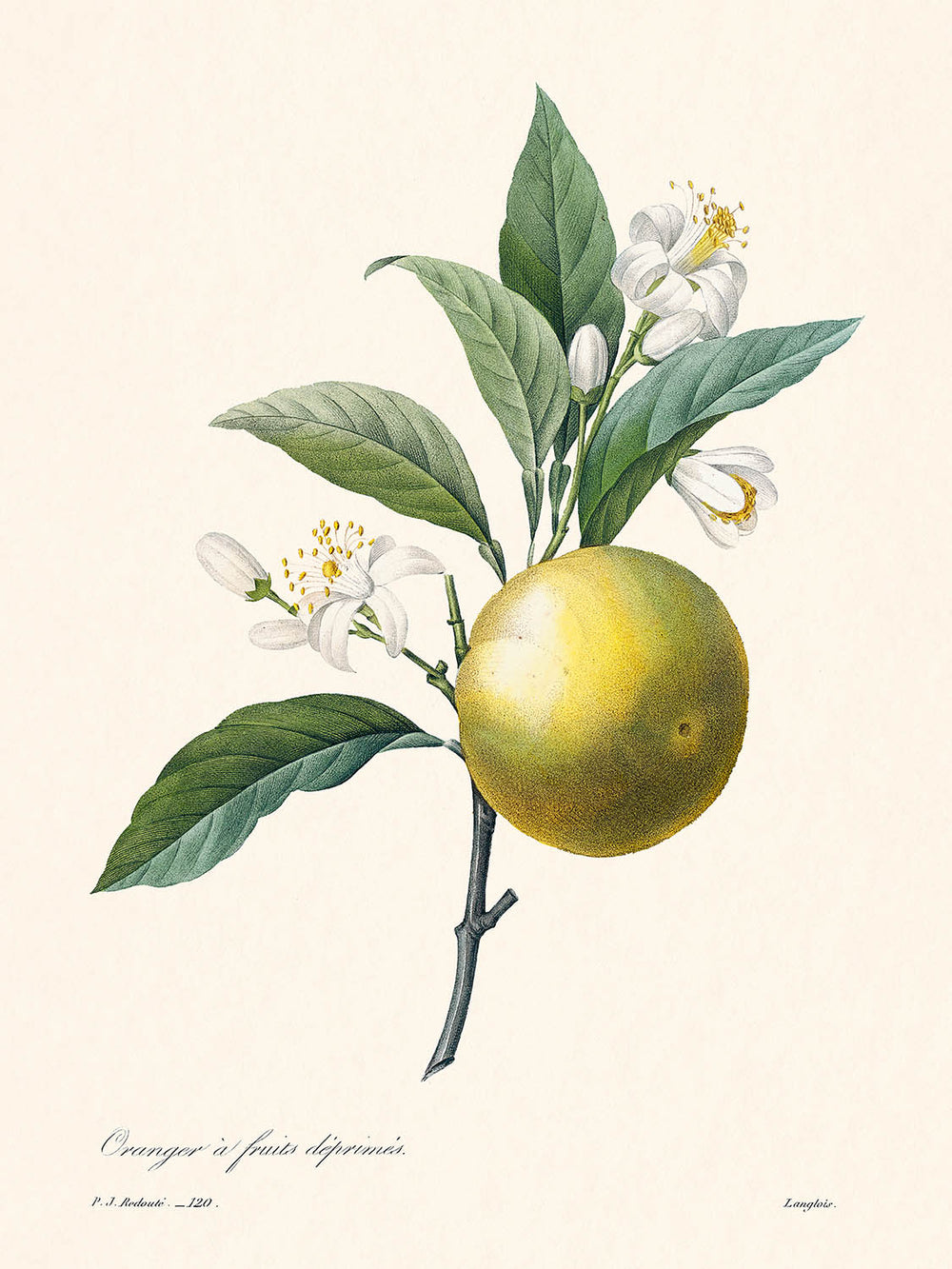 Ilustración botánica de naranja por Pierre-Joseph Redouté, 1827