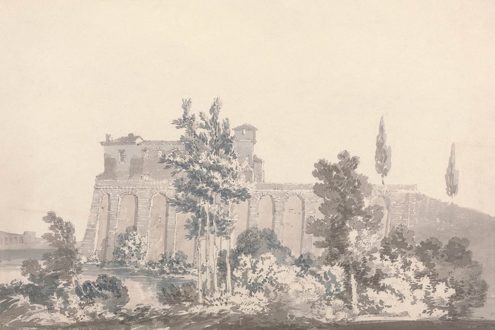 Edificios con vistas al agua, cerca de Nápoles por Turner, 1796