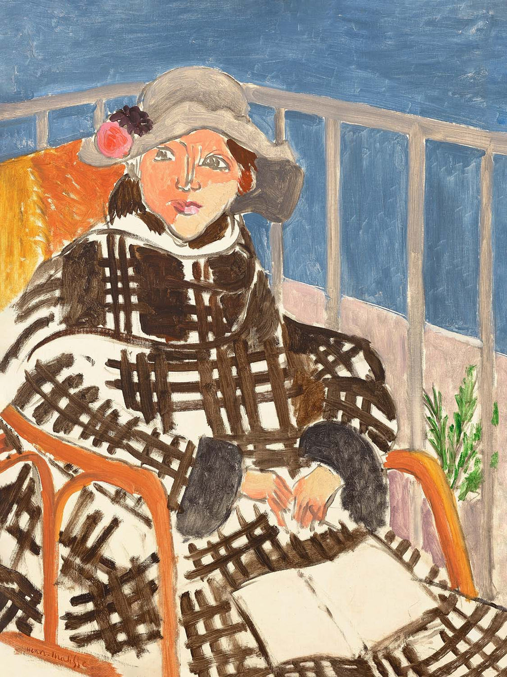 Mademoiselle Matisse en manteau escocés (Mademoiselle Matisse in a plaid coat) de Henri Matisse, 1918