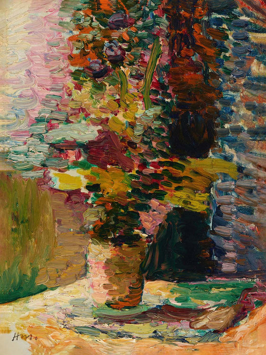 El "Vase de fleurs" de Henri Matisse, creado en 1898, es un impresionante ejemplo de las primeras obras de uno de los artistas más aclamados del siglo XX. Reconocido por su liderazgo en el movimiento fauvista, la obra de Matisse es celebrada por su vibrante uso del color y composiciones audaces. "Vase de fleurs," una pintura exquisita, encapsula el estilo en evolución de Matisse en el umbral de su viaje hacia el arte moderno. Esta obra es un nostálgico guiño a la acentuación de los motivos naturales a finales del siglo XIX, yuxtapuesta con una estética modernista emergente.