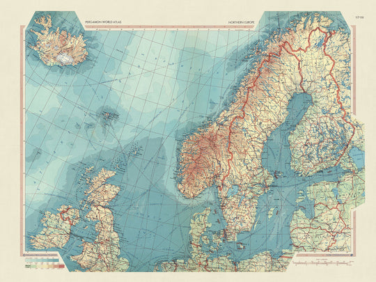 Mapa antiguo de Europa del Norte, 1967: Escandinavia, Islas Británicas, Islandia, Mar del Norte y Báltico