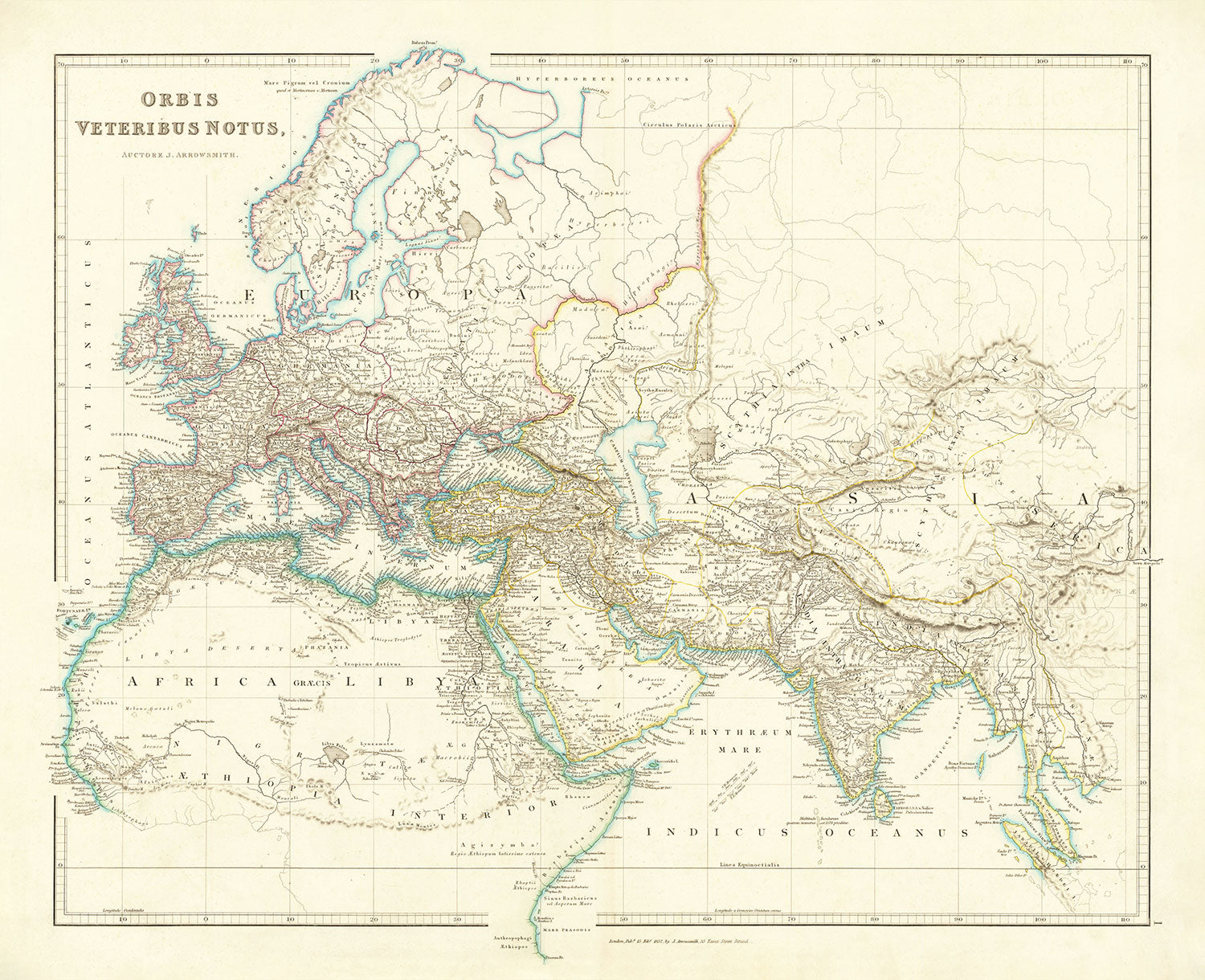 Mapa antiguo del mundo de Arrowsmith, 1822: Europa medieval, Oriente Medio, África