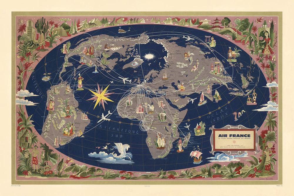 - Cartógrafo: Lucien Boucher, conocido por icónicos carteles de mapas mundiales para Air France.