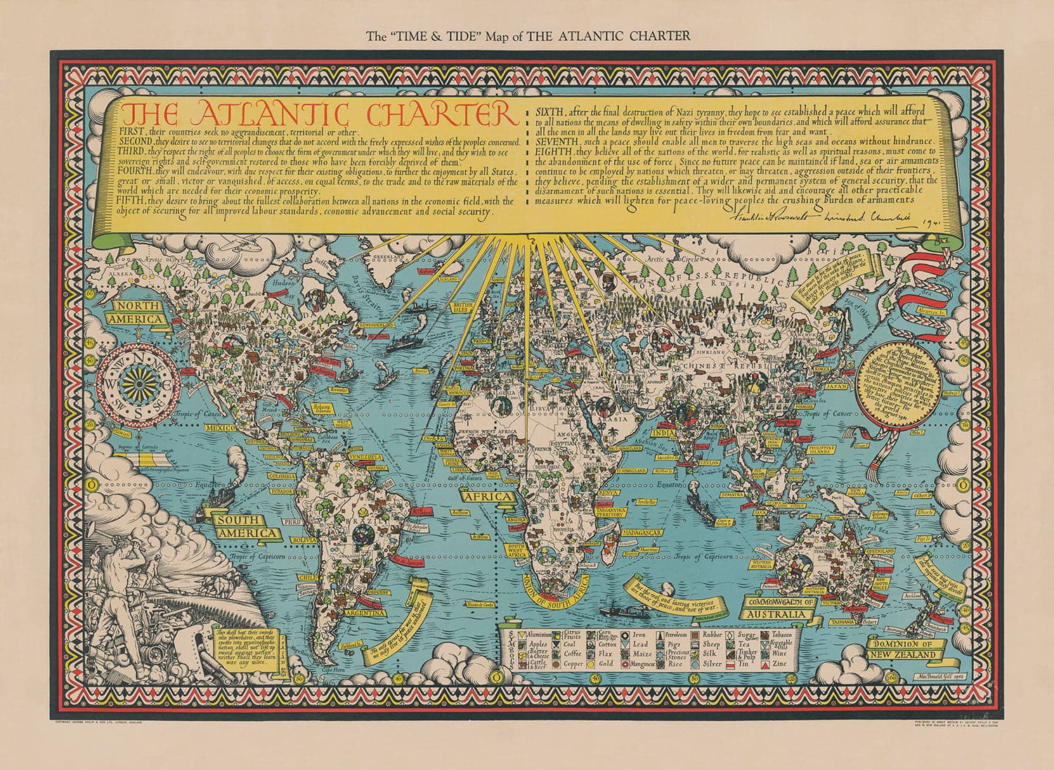 The Atlantic Charter por Max Gill, 1942: World War 2 United Nations Wall Chart