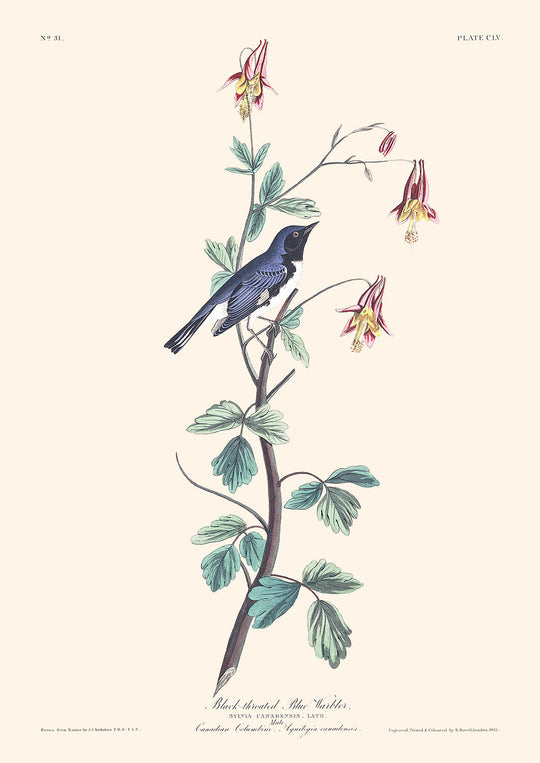 La ilustración del Chipe Azul de Garganta Negra es notable por su representación precisa y colores vibrantes, retratando hábilmente el plumaje azul y negro del macho, y los tonos más sutiles de la hembra. La meticulosa atención al detalle de Audubon y su pasión por las aves son evidentes en esta exquisita ilustración.