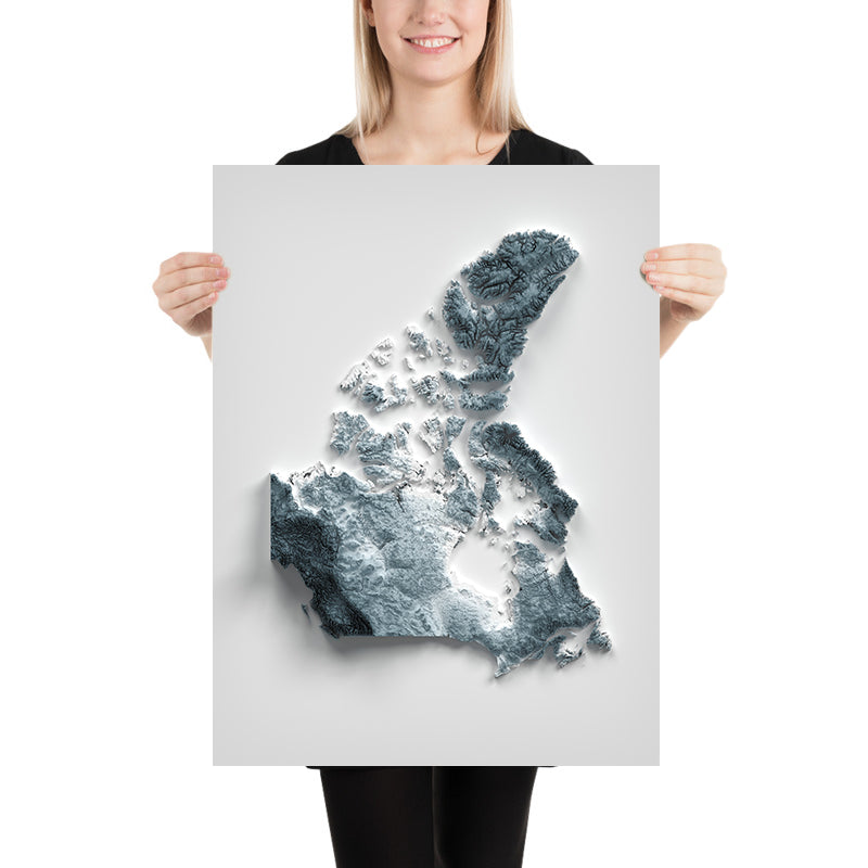 Whether you call Canada home, remember a road trip across its provinces and territories, or are seeking a meaningful gift, this relief map uses light and shadow to reveal the country’s mountains, valleys, plateaus, and coasts in a way that feels both familiar and newly discovered.