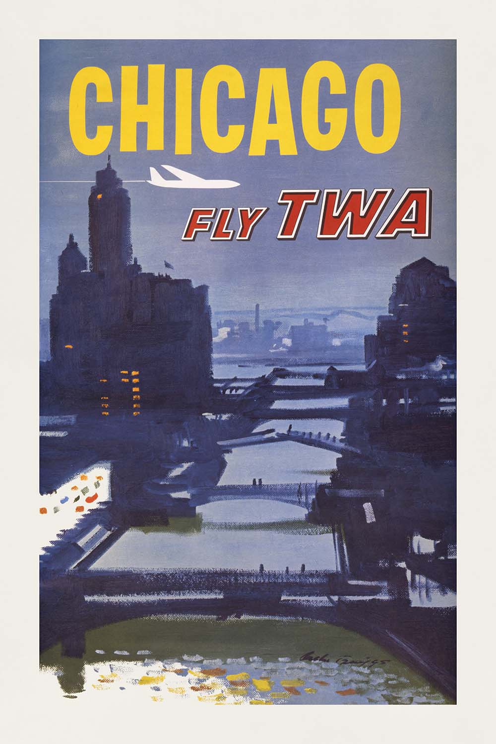 Chicago Travel Poster: Fly TWA by Austin Briggs, 1960