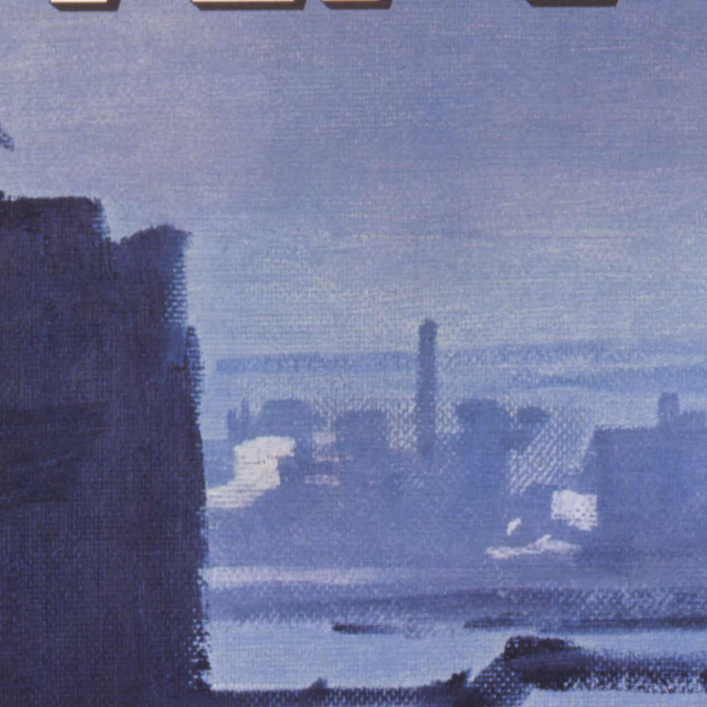 This Chicago poster is a standout of the TWA series from the peak of jet travel. It evokes the city just as O’Hare was rising to global prominence, selling not only a destination but an idea: sleek, swift access to America’s great metropolis of architecture, commerce, and culture. The stacked river bridges are an unmistakable nod to the city’s engineering heritage, while the headline type shouts with the confidence of the era.