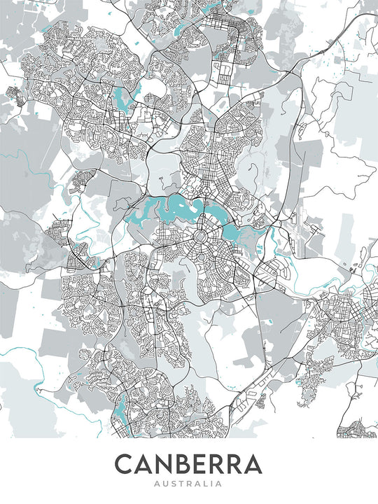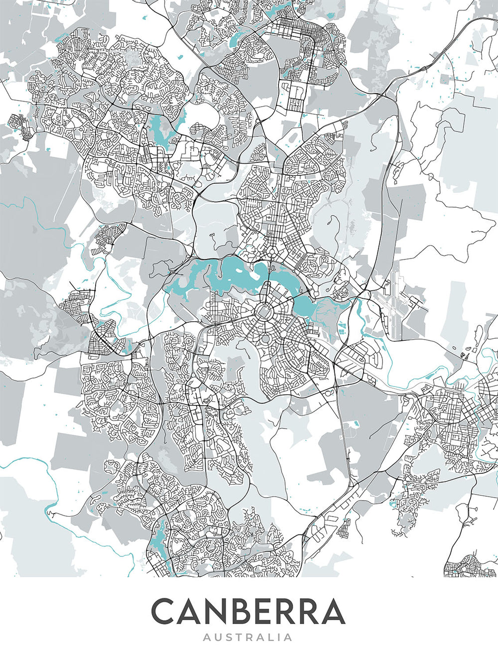 Este mapa es la manera perfecta de añadir un toque de estilo moderno a su hogar u oficina. También es un gran regalo para cualquiera que ame Canberra o esté interesado en la cartografía.