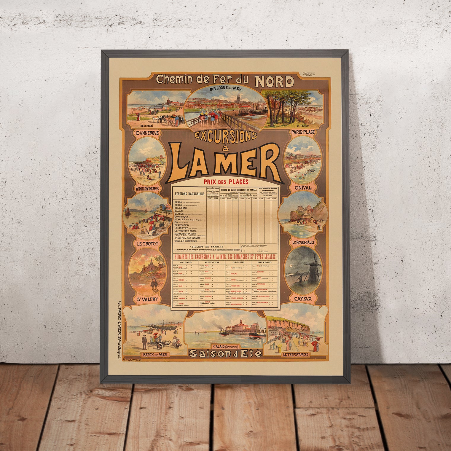 Northern France Travel Poster: Chemin de fer du Nord – Excursions à la mer by Gustave Fraipont, 1890
