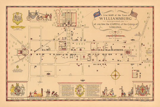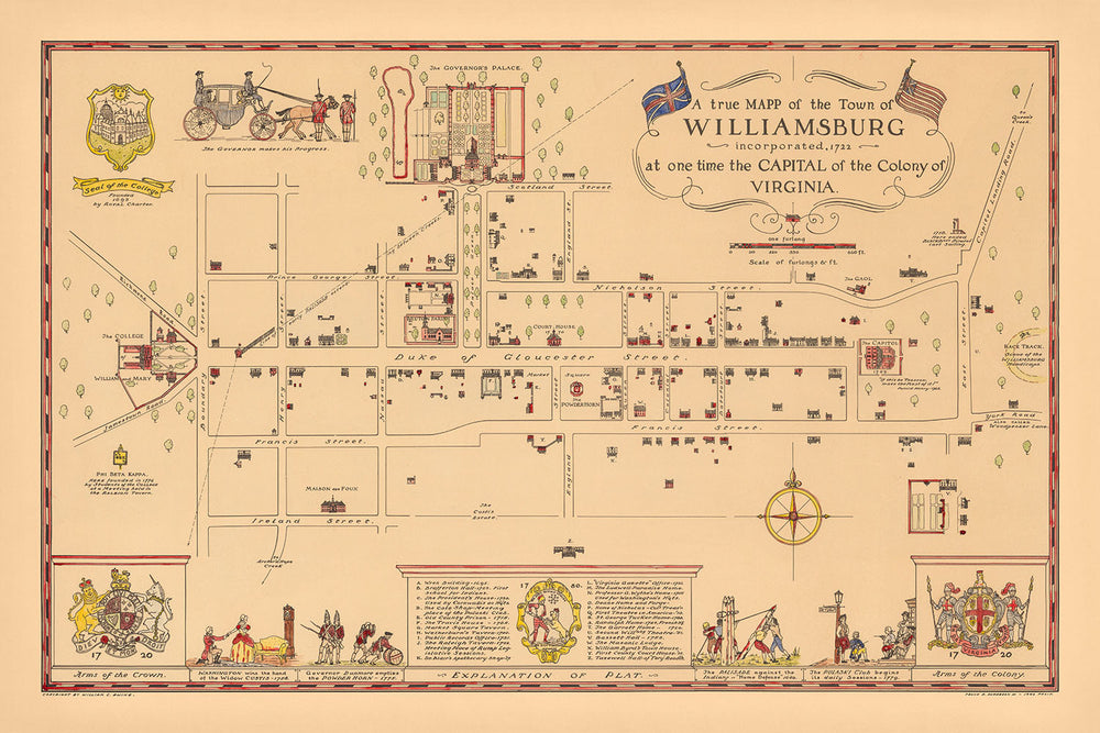 - Mapa pictórico a color de Williamsburg, una vez la capital de Virginia