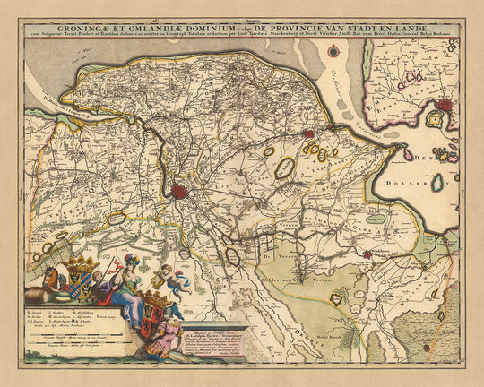 Este mapa no es sólo una obra de arte; es un documento histórico que ofrece una instantánea del pasado de la región. Ofrece una mirada fascinante al paisaje político y geográfico de Groningen y Omland durante el siglo XVII. Para historiadores, cartógrafos y entusiastas de la historia holandesa, este mapa constituye un recurso valioso y un cautivador viaje visual al pasado.