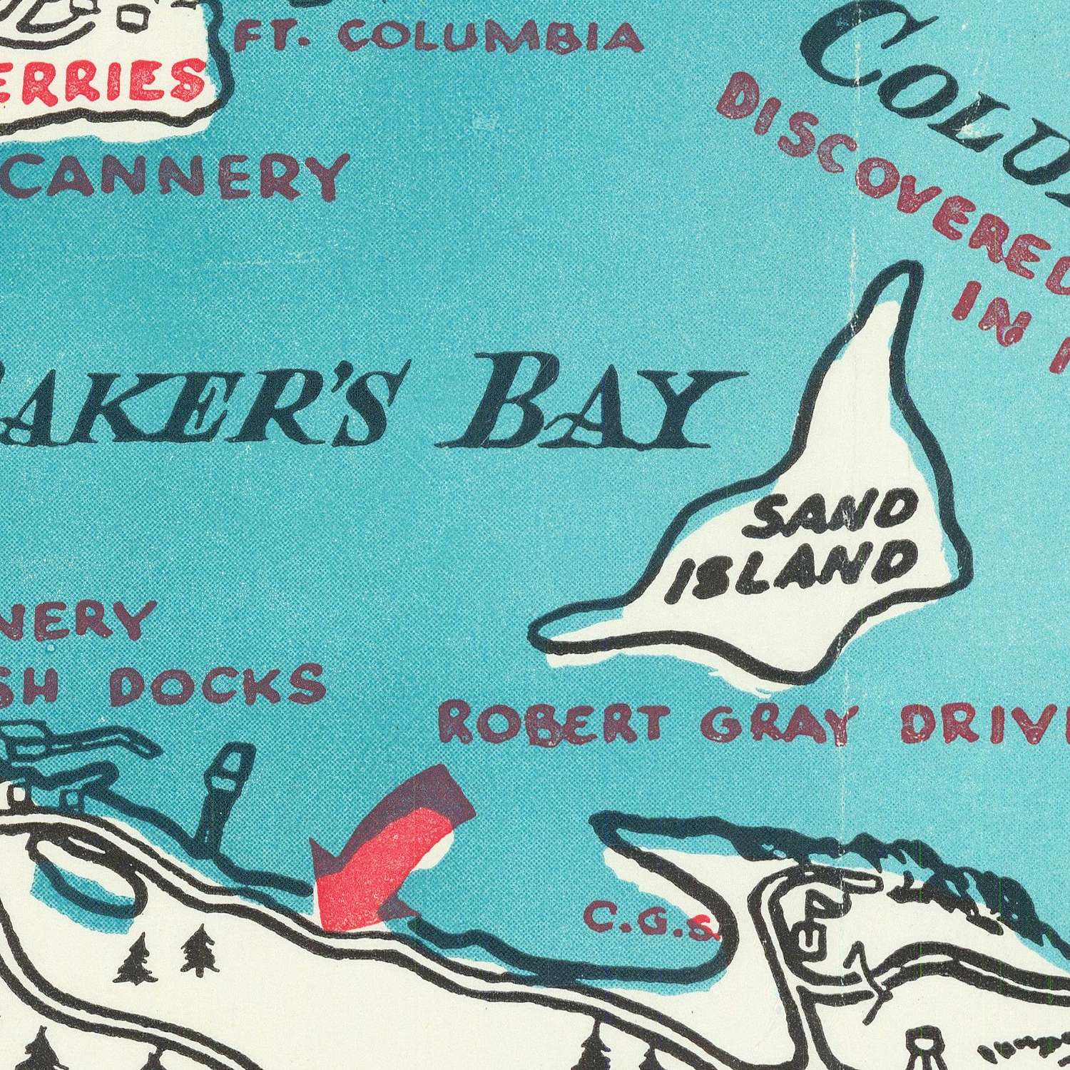Charles Mulvey, working in concert with Maureen Muravy, helped define the Pacific Northwest’s mid-20th-century pictorial vernacular: witty vignettes, vibrant color, and reportage-level local knowledge fused into maps that both guide and delight. Their Long Beach Peninsula captures the postwar shift to motor tourism and outdoor leisure without sacrificing geographic fidelity. Humor glints in the place names; accuracy rules the shorelines and roads; and advertising—epitomized by Red’s Cafe—slides seamlessly into the visual narrative. Copies of this map are rare, with only one institutional holding confirmed, heightening its allure. For collectors of city mapping, coastal history, and American pictorial cartography, it is a coastal metropolis in miniature—an entire way of life compressed into a bright, navigable strip of paper.