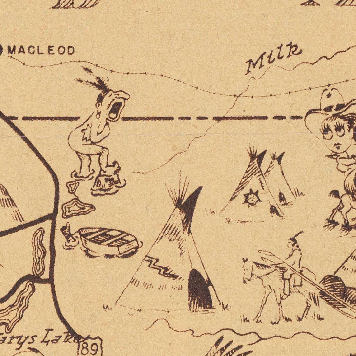 - An artistic legend explaining various map features