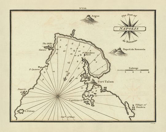 Puerto Viejo de Napoli de Rumanía, Carta Náutica de Grecia por Heather, 1802: Nafplion, Golfo Argólico