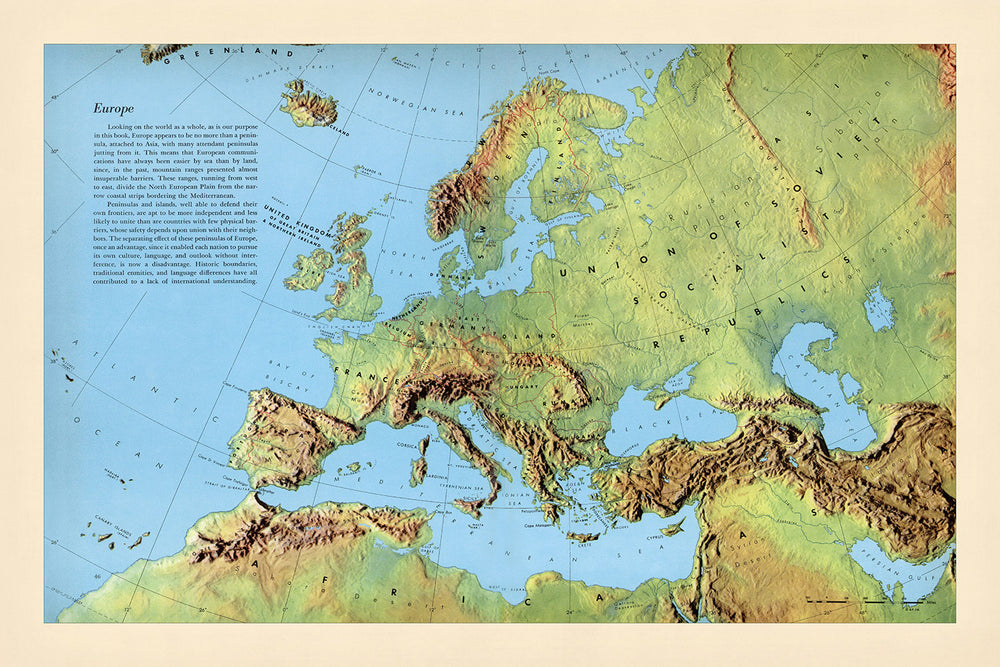 En general, este mapa es un recurso valioso y hermoso para cualquier persona interesada en Europa. Es un mapa físico detallado, una obra de arte y un documento histórico, todo en uno.