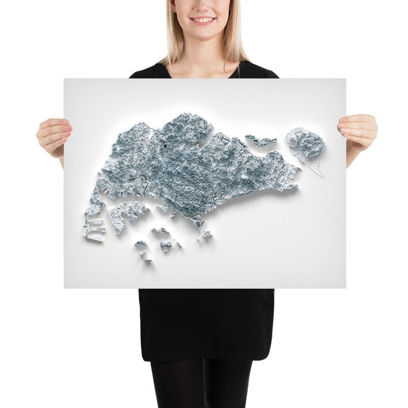 Even in a country famed for its level ground, the interplay of height and hollow is unmistakable in this relief. Hilltops glint; wooded slopes soften; urban basins and river courses sink into stippled shadow. Whether you call Singapore home, return here in memory, or are gifting it to someone who does, this map invites you to trace familiar journeys along ridgelines and waterways, to feel the island’s quiet elevations under your fingertips, and to see a well-loved city-state through the simple drama of light and form.