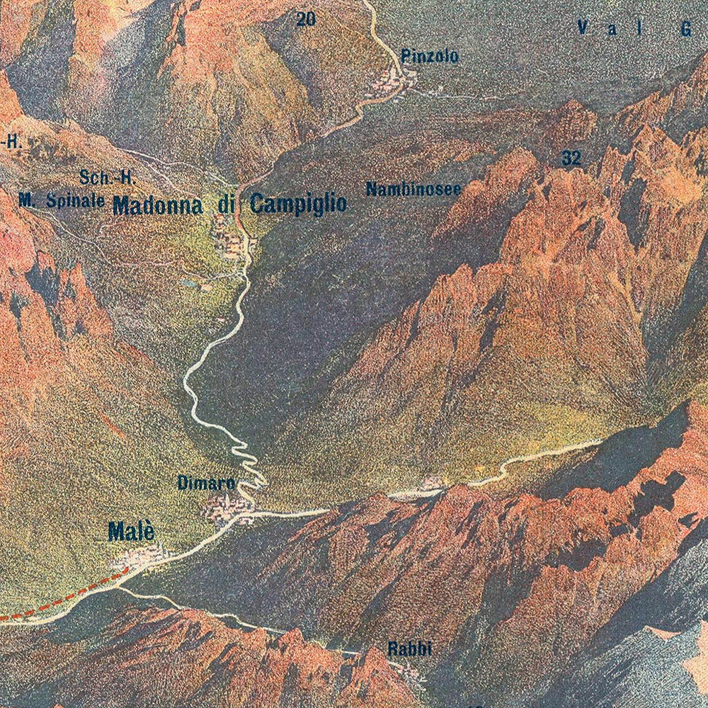 Historically, the subject is irresistible. In 1908, the Tyrol straddled high passes and deep valleys, with the Ortler (Ortles) mountains reigning over a world of glaciers and meadows, while the Gardasee offered a famously mild climate at the Alpine edge. Posters like this fueled a boom in mountaineering, spa visits, and lake excursions by showing the region as a single, connected adventure—made possible by reliable rail timetables and newly built mountain lines. Displaying it today is like hanging an invitation to a grand tour of the Habsburg Alps on your wall.