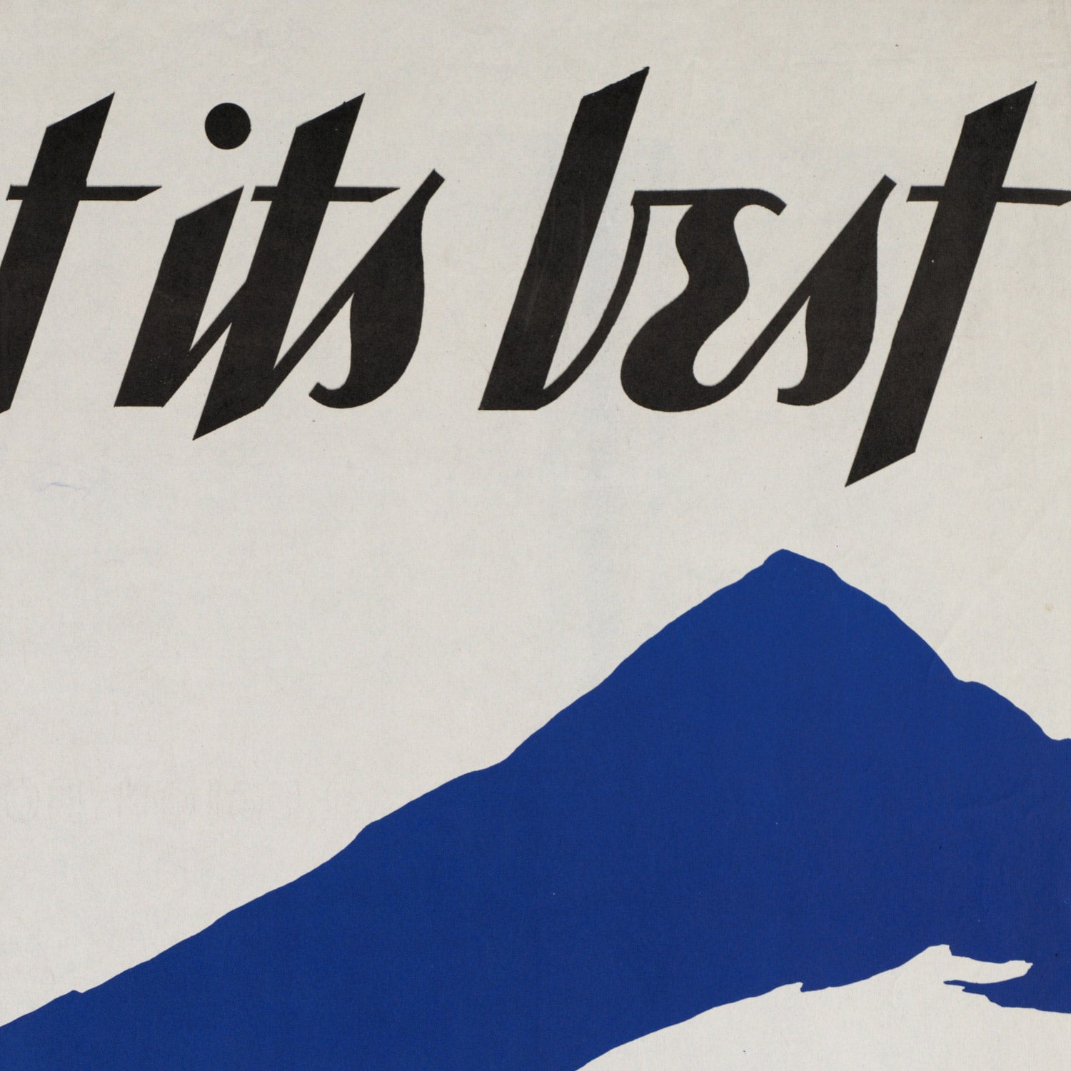 Visually, the design is all elegant economy: deep and mid-tone blues dominate, setting a calm, expansive mood; cool whites articulate snow-bright highlights; and inky blacks sharpen silhouettes for strong contrast. Angular, stylized peaks rise in graphic planes while the rounded forms of the figures introduce a human presence without breaking the poster’s clean geometry. Minimal shading, flat color fields, and a commanding sans serif headline deliver instant legibility—a hallmark of the Art Deco era and a reason this image still feels contemporary in modern and mid-century interiors alike.