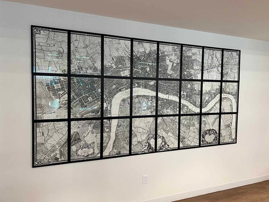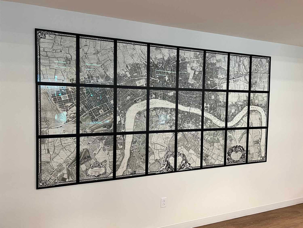 Vous pouvez choisir la carte en tant que pièce unique, ou en 24 pièces séparées. La pièce unique est plus facile à accrocher, et esthétiquement, vous pourriez la préférer. 24 pièces sont plus authentiques, car chaque carte a été initialement émise séparément, et cela crée un effet très saisissant lorsqu'elle est encadrée sur le mur comme une immense grille.