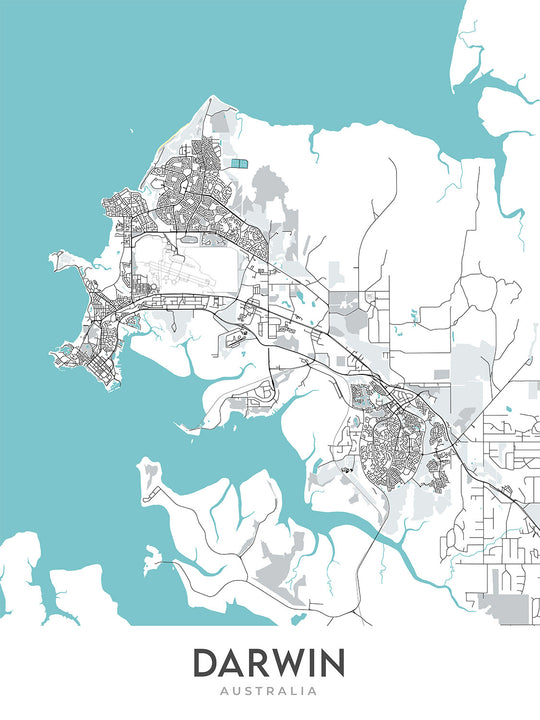 Cette création originale de The Unique Maps Co. présente une cartographie unique, un design moderne et une palette de couleurs saisissante. La carte est une belle œuvre d'art qui ajoutera une touche de sophistication à n'importe quelle maison ou bureau. Les détails complexes et les couleurs vives font de cette carte un sujet de conversation captivant et un excellent moyen d'explorer la ville de Darwin.