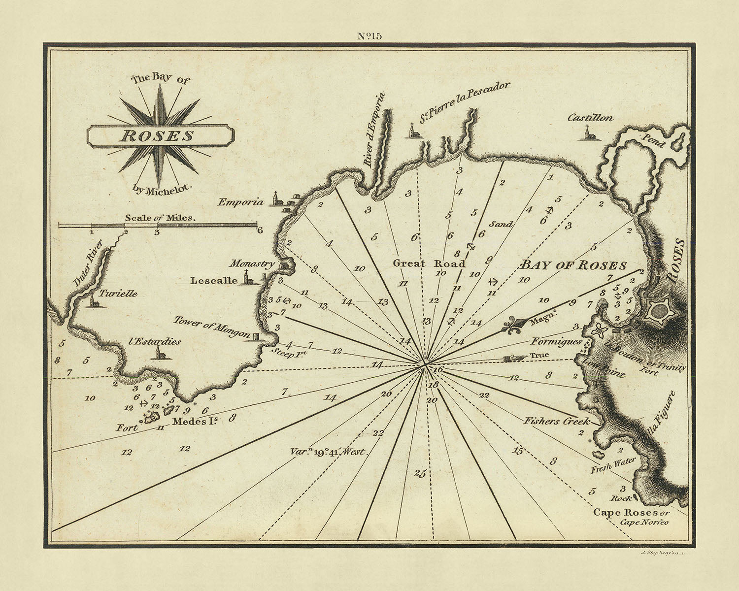 Document historique précieux, « La Baie de Roses » offre un instantané du paysage maritime du début du XIXe siècle de cette partie de la Méditerranée. L'inclusion de sondages et d'autres détails nautiques met non seulement en évidence les dangers et les passages sûrs de ces eaux, mais sert également de témoignage historique de l'environnement maritime tel qu'il existait il y a plus de deux siècles.