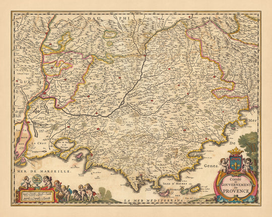 Ancienne carte de Provence, France par Visscher, 1690 : Marseille, Avignon, Cannes, Nice, Parc national des Calanques