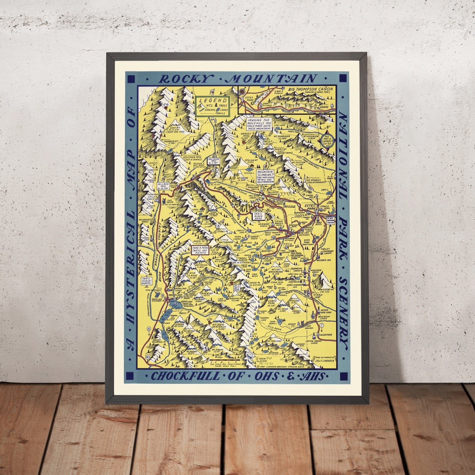 Old Map of Rocky Mountain National Park by Lindgren, 1948: Trail Ridge Rd, Estes Park, Longs Pk, Bear Lake, Grand Lake