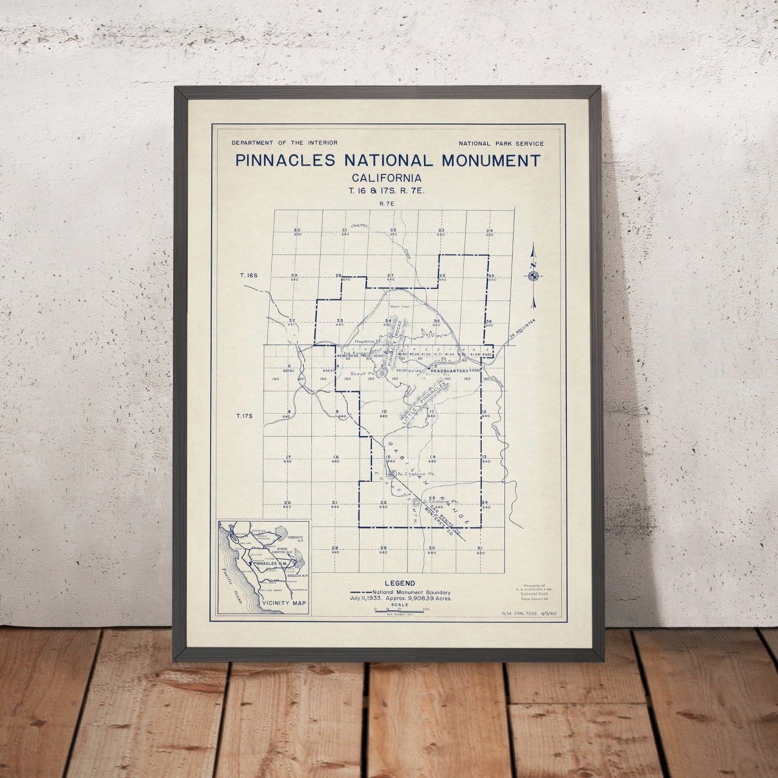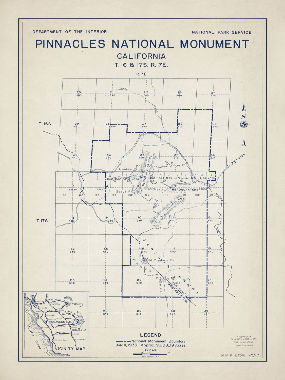 - Historical Context: Created before Pinnacles was designated a national park; used to establish boundaries and key features of the monument.